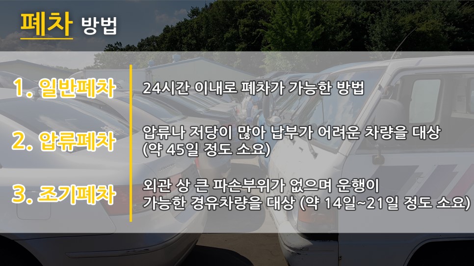 상황에 따라 일반폐차, 압류폐차, 조기폐차 등